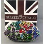 A DAZZLING BUTLER & WILSON amazing hard clamshell ladies purse in box. Appears unused, an impressive piece. Bag measures 22cm approx.