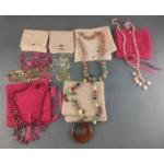 DESIGNER LOLA ROSE A Collection of hardstone jewellery to include beaded pendant necklaces, etc, with Lola Rose pouches. Six soft pouches with contents.