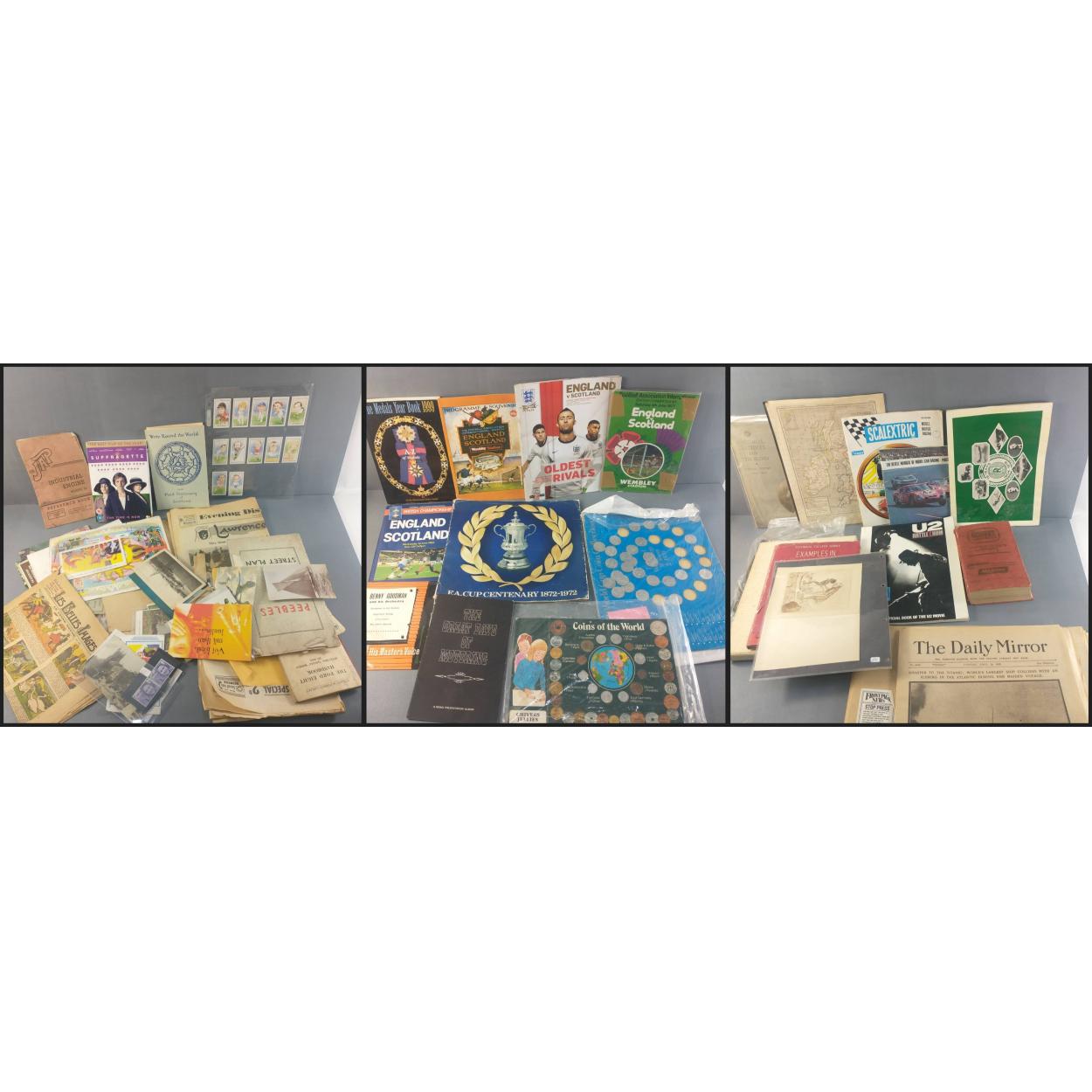 Mixed box of ephemera, to include SCALEXTRIX and REVELL slot car vintage catalogues x2, MAYNARD DIXON book of Native American photographs in slip case, some old maps, some old Motorcycle leaflets and much much else.