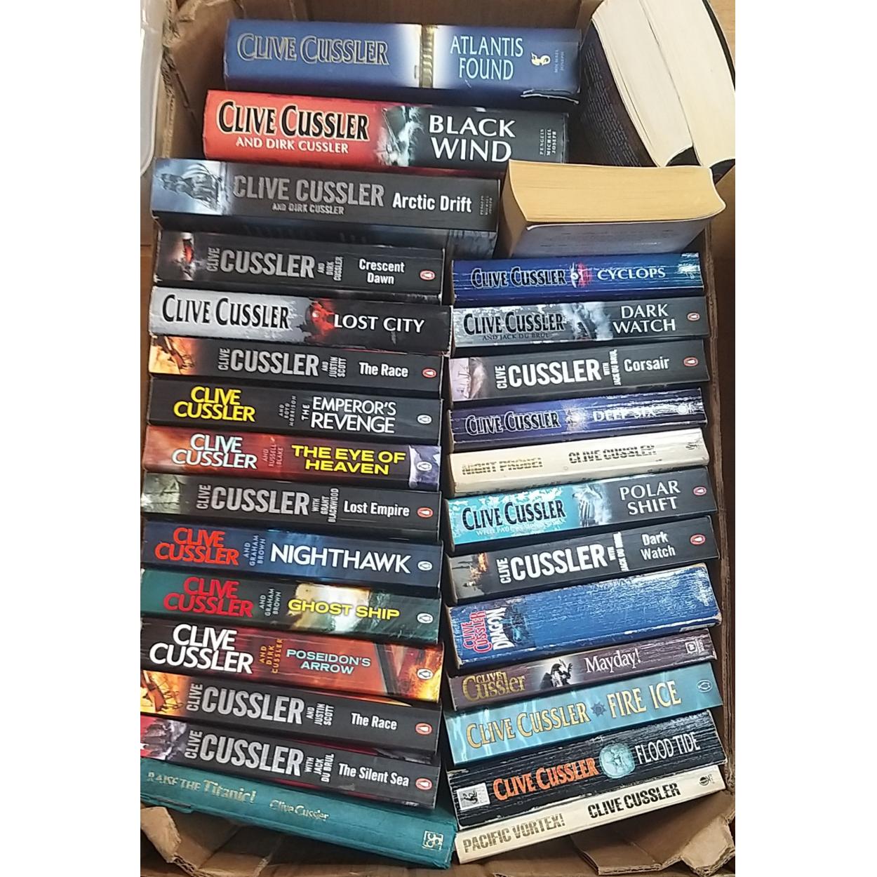 A box of 28 titles by CLIVE CUSSLER. Summer reading sorted.