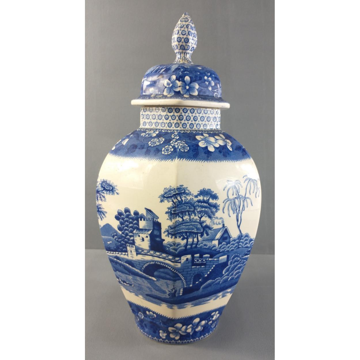 A large SPODE Blue Tower pattern ginger jar standing 34cm approx