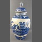 A large SPODE Blue Tower pattern ginger jar standing 34cm approx