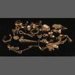 A small quantity of 9ct / 375 marked jewellery pieces. Earrings, chains etc, minor stones, gross weight 21.5g approx