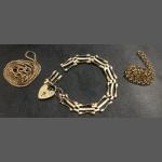 Two broken chains and one broken bar bracelet, all stamped 375. Gross weight 17.95g approx