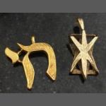 A 9ct stamped pendant on a 375 stamped chain with small central stone. Note chain is heavily knotted and tangled. Gross weight 2.6g approx. With one other broken yellow metal chain 0.5g approx