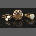 Three dress rings, each hallmarked and stamped 375, size K, M and O. Gross weight 7.18g approx