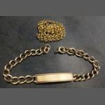 A 40cm long chain, stamped 375 with a 19cm approx identity bracelet (needs repair). Weight 12.05g approx