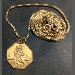 A 375 stamped chain 58cm long approx with St Christopher medallion (15mm approx) stamped 375. Weight 5.83g approx