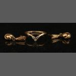 Earrings 375 hallmarked and a 9ct gold wishbone ring with three small stones. Gross weight 2.6g approx.