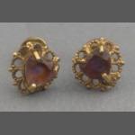 A pair of 375 stamped earrings set with small amethyst. Gross weight of 1g approx.