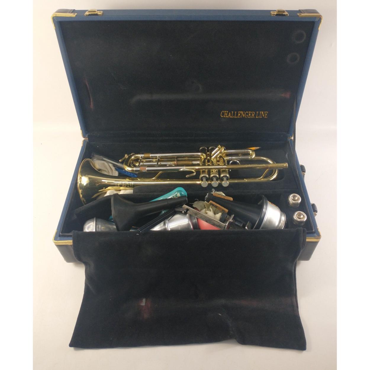 Trumpet in carry case. CHALLENGER II B&S Markneukirchen Klingenthan Model3137/2. A qulaity piece with mother of pearl keys and a nice fitted case with accessories.
