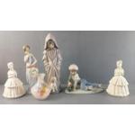 A LLADRO Daiso 1982 figurine (23cm approx), of a girl in a hat, a LLADRO girl holding a hat, a LLADRO Inuit child with polar bear cub, a LLADRO girl with pig and also one with a chicken