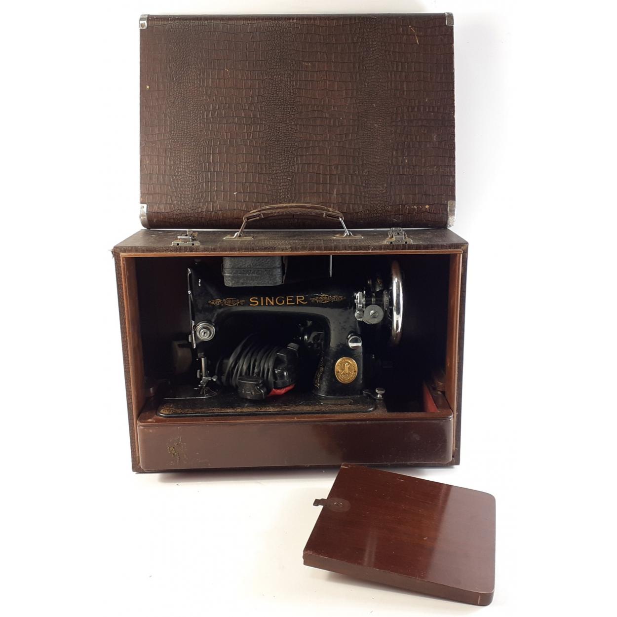 SINGER sewing machine in case. Overall good condition with strong gilt decoration.
