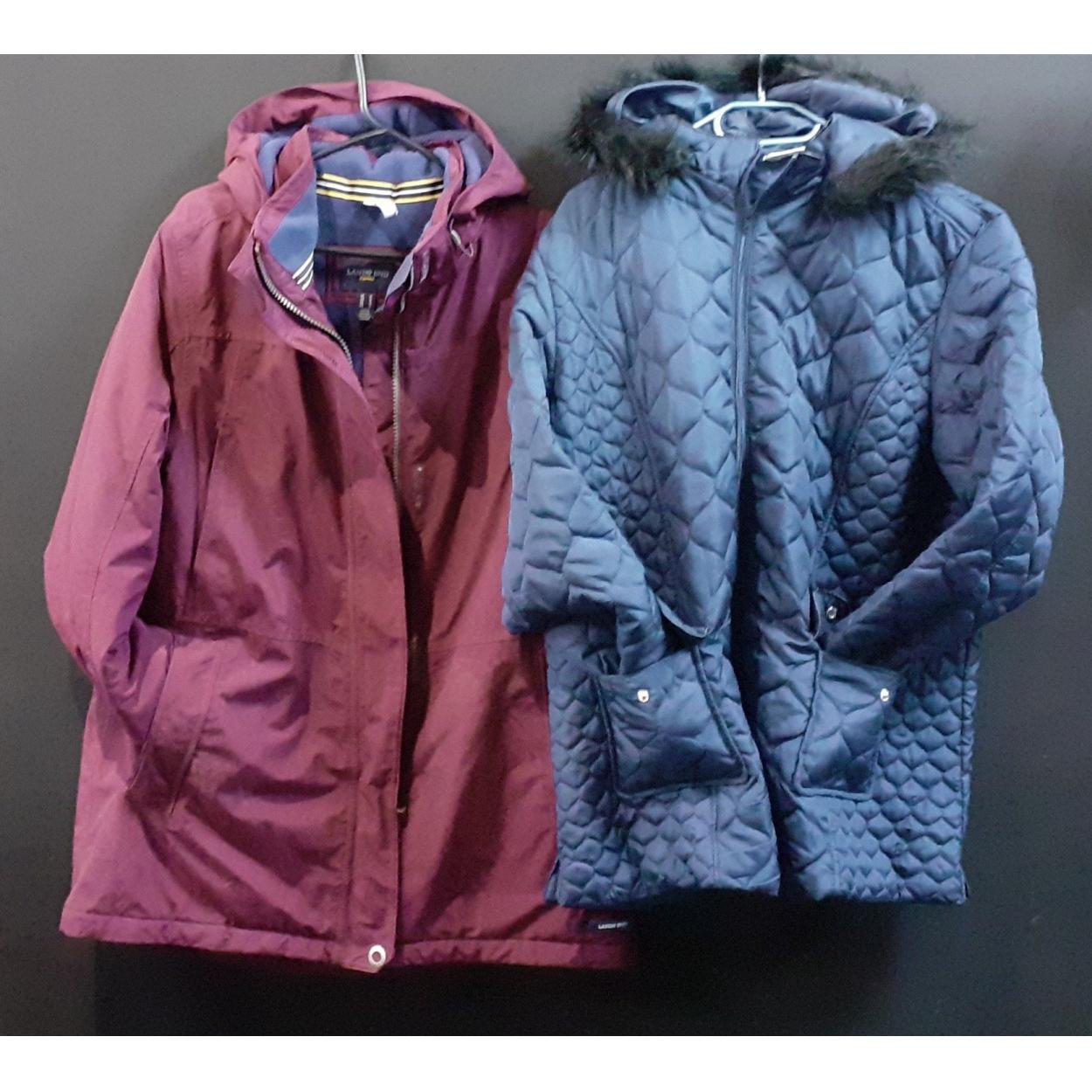 A LAND'S END plum coloured winter jacket size medium and also a quilted navy blue jacket size 50/52.