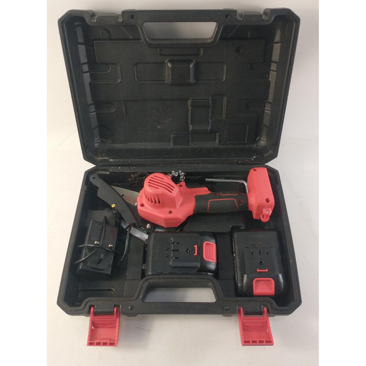 Lovelife 2000 Mah hand held chain saw in case with battery etc. Chain loose.