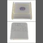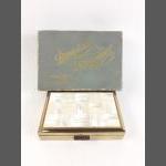 A vintage CLOVER musical powder compact made of mother of pearl and abalone. Plays Invitation to the Waltz. Comes with soft pouch and box