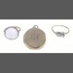 A pendant stamped 9ct back & front, a ring 18ct plated, and an unmarked ring with a purple stone