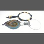 A MURANO style glass handled small hand magnifier with also a tortoise shell handheld magnifying glass