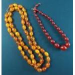 A string of amber style beads approx 106cm long and another string of graduated beads, length approx 41cm long