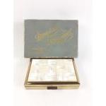 A vintage CLOVER musical powder compact made of mother of pearl and abalone. Plays Invitation to the Waltz. Comes with soft pouch and box