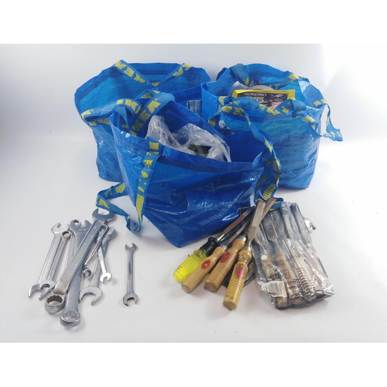 QUALITY! Bags of tools - spanners, chisels galore plus a few vintage wooden-handled tools including hammers etc