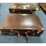 Two vintage suitcases, the first 67x37x26cm with 2 internal divisions and a ZIM ISRAEL NAVIGATION Co. label on it, the second is an expanding brown suitcase measuring 66x42x20cm
