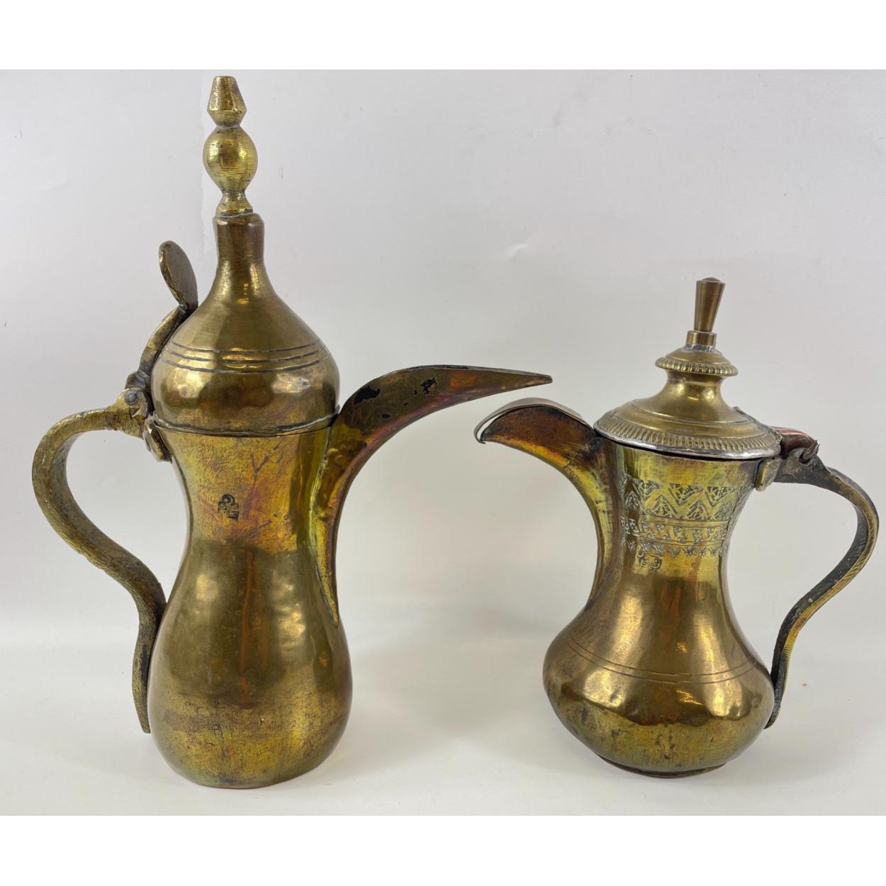 Two vintage INDIAN brass coffee pots - one standing 24cm, the other 31cm tall