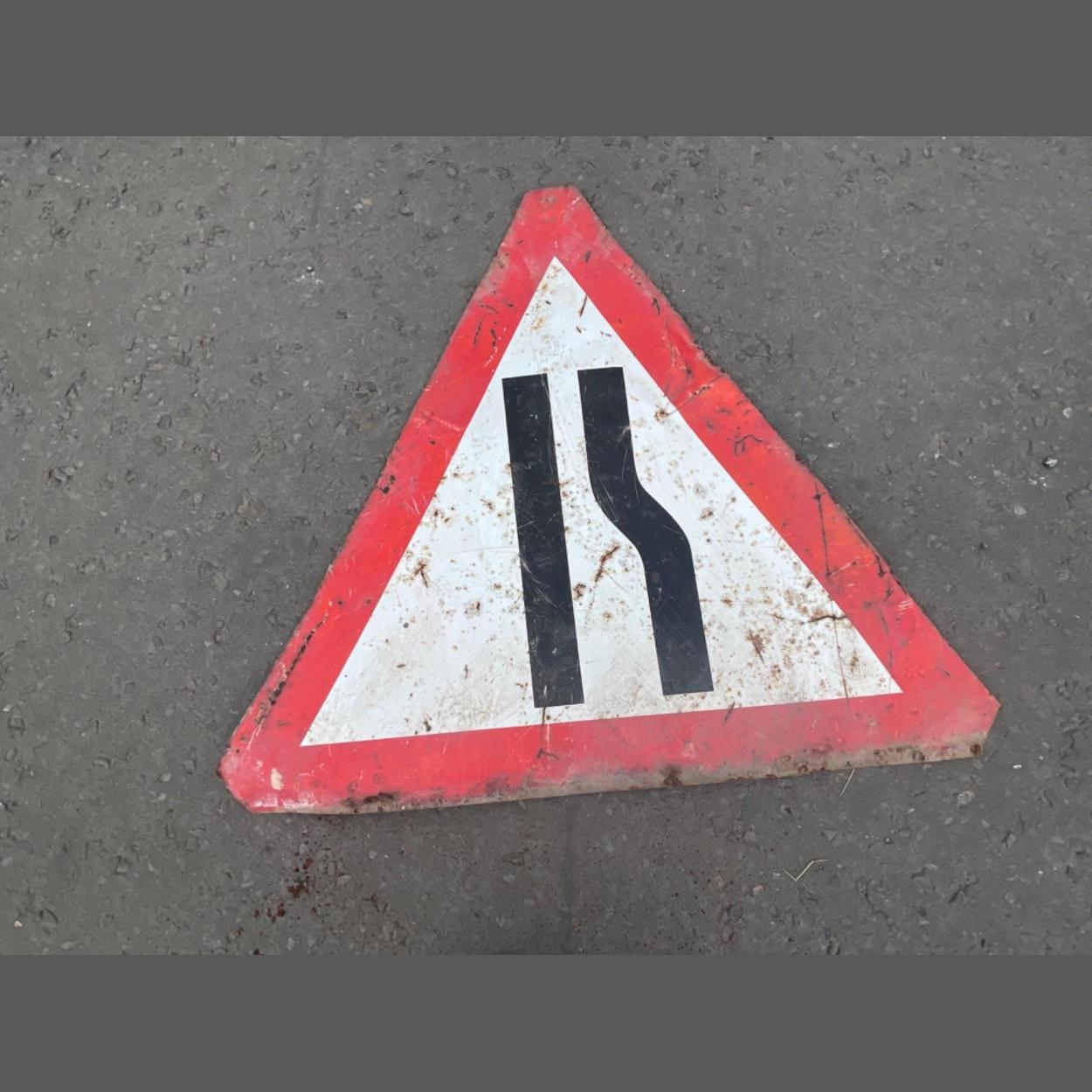 ALUMINIUM TRIANGULAR ROAD narrows sign 2ft length approx