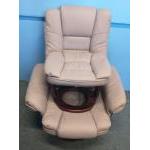 An EKORNES style light-grey fine-suede swivel chair with matching footstool