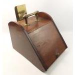 A really rather nice wooden purdonium with a wooden handled brass scoop (15cm approx) in good useable condition