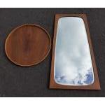 An attractive mid-century wall mirror in excellent condition 70cm tall plus a retro Danish teak tray 40cm diameter approx