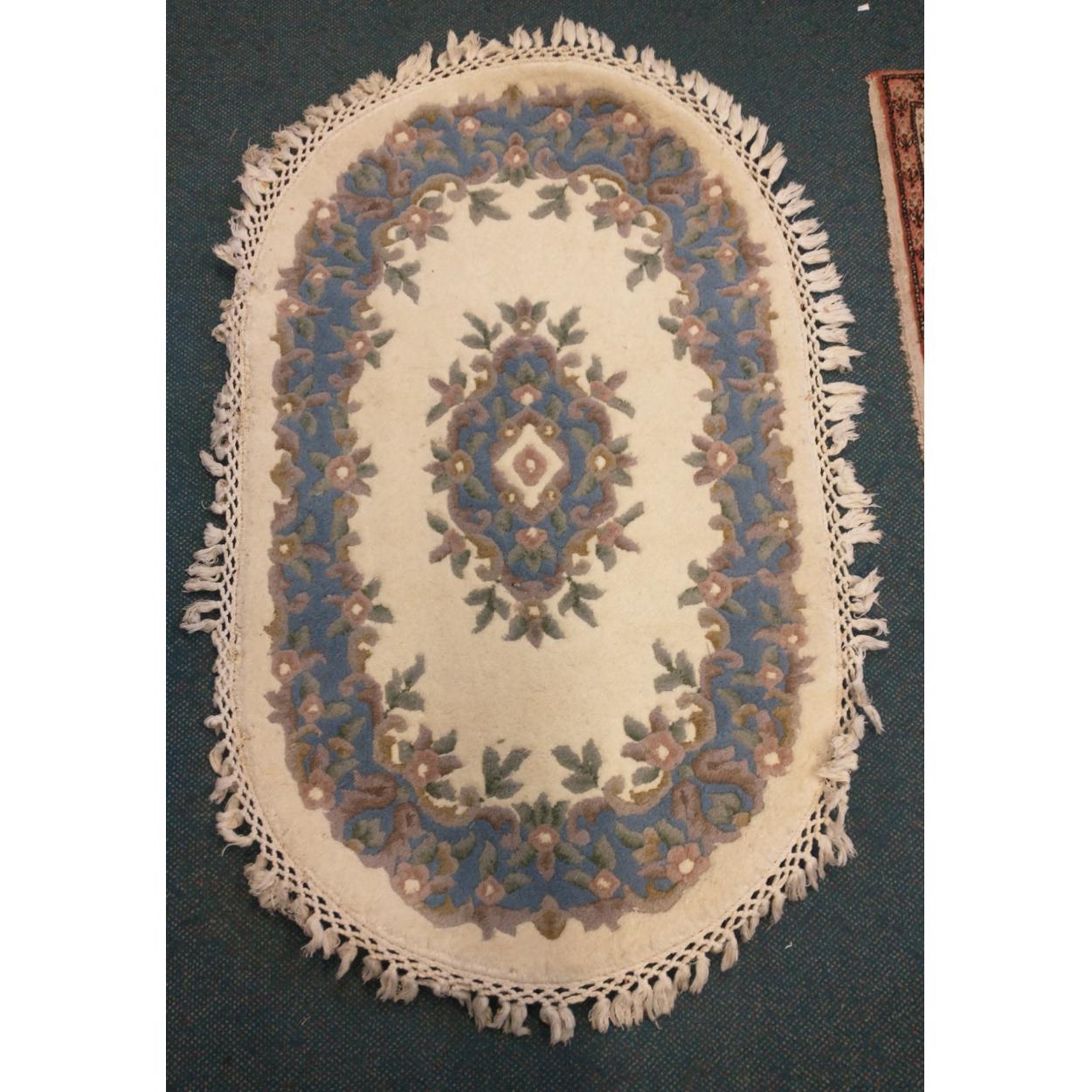 A thick oval knotted woollen rug, 135cmx90cm approx