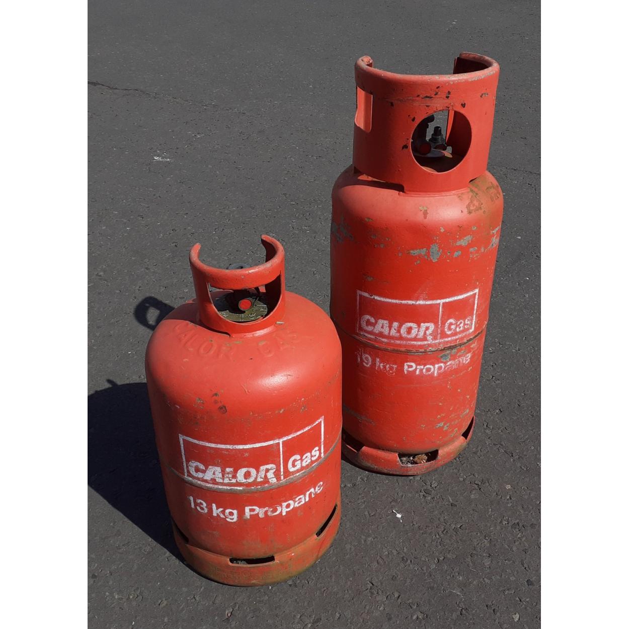 Two empty CALOR GAS canisters - 19kg and 13kg