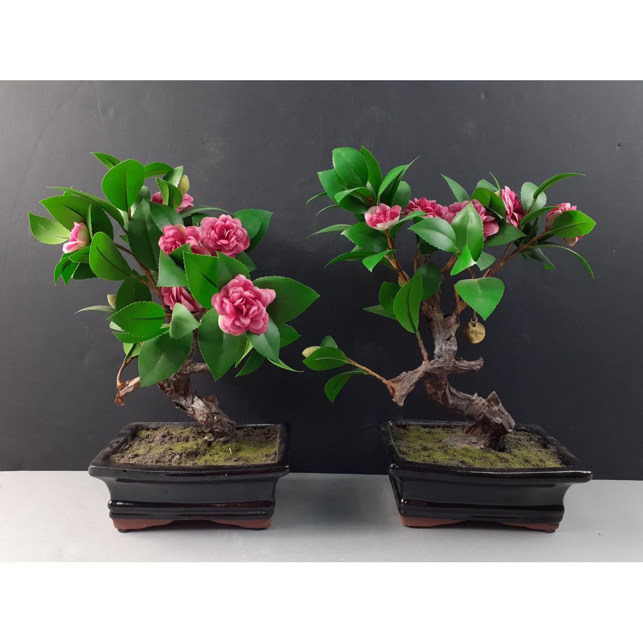 Two attractive artificial bonsai trees in terracotta bases, 27cm high