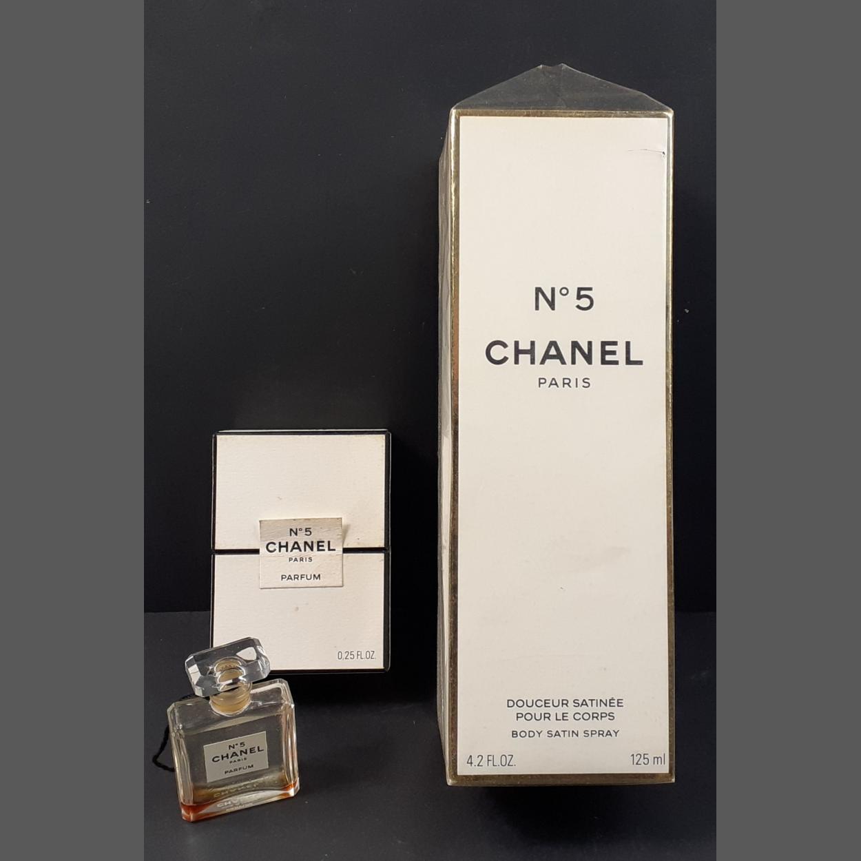 WORLDS FINESTPERFUME - A TRUE CLASSIC! A sealed box of 125ml CHANEL No 5 body satin spray, and a used small boxed perfume bottle