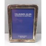 A small unused silver hallmarked photo frame, in good order. Hallmarks for Sheffield 2002. Maker FH for Francis Howard. Size 9x6cm