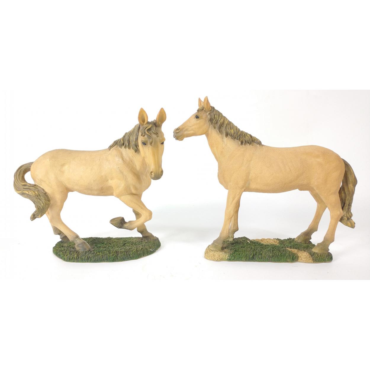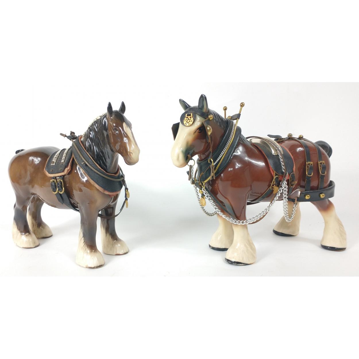 Two Clydesdale horse models complete with their tack, taller horse stands at 22cm high