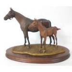 A BORDER FINE ARTS large mare with foal on a wooden plinth, stands approx 20cm high, tiny chip from foal's ear