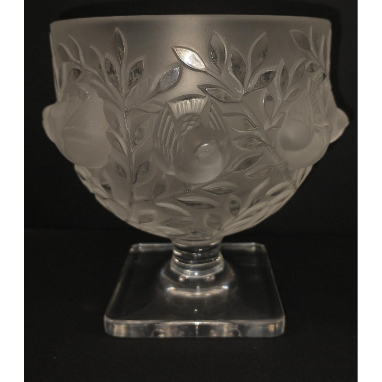 LALIQUE ( signed to the base) raised footed bowl with wild birds and flora decoration