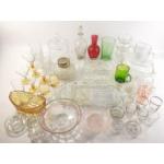 A mixed box of interesting and useful glassware to include, biscuit barrel with lid, kitchenware and useful glasses