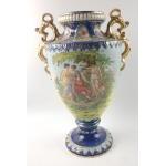 Blue based 19th century URN VASE with double gilded handles and scenes of various Grecian ladies