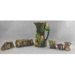 A collection of WITHERNSEA EASTGATE FAUNA POTTER and a crack at the lip), a plantpot holder (approx 20cm), and four smaller flower holders the tallest being 11cm approx