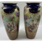 Pair of Large Dresden vases with scenes of children in country setting each standing approx 40cm high [ both have been repaired at rims ]