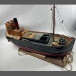 STUNNING - PARAHANDY WOULD BE PROUD! ! A large CLDE PUFFER style bespoke kit boat, will require a little tlc to bring it to it's former glory - what a CONVERSATION STOPPER! We think it also has a wee motorized unit, with lots of spare parts and add-ons all within the 'Hold' Dimensions Length 35" Breadth 9" Tall 23" approx(Highest point from keel to mast)