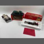 3 pieces to include BURAGO boxed JAGUAR XK120 Roadster 1948 , car mint but box sellophane window is a bit bashed, but otherwie car is good, also a SPECIAL EDITION MATCHBOX Models Of Yesteryear YS-39 Passenger Coach and Horses circa 1820's in MINT condition un-played with, box is in good condition and lastly with an un-boxed model of THE GREAT GATSBY style Mercedes Benz Roadster 1928, windscreen missing and roof loose, awing mirror missing and in a dusty condition but playworn