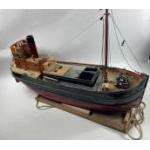 STUNNING - PARAHANDY WOULD BE PROUD! ! A large CLDE PUFFER style bespoke kit boat, will require a little tlc to bring it to it's former glory - what a CONVERSATION STOPPER! We think it also has a wee motorized unit, with lots of spare parts and add-ons all within the 'Hold' Dimensions Length 35" Breadth 9" Tall 23" approx(Highest point from keel to mast)