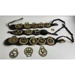 A collection of brass and some leather vintage and more recent horse brasses to include Queen Victoria, cockerel , thistle etc etc etc