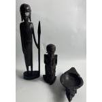 Hand carved tribal figures and a hand carved ash tray all in local wood, tallest figure is 34cm tall
