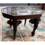 An INDIAN Octagonal hand carved and inlaid small table with elephants in the forest scenes dimensions 46cm length x 30cm width x 30cm height