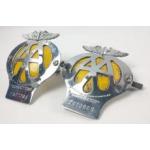 Two AA Badges with mounts and numbers 7A77264 and 2A12809.